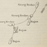 Er sei zur Zeit der Kollision auf der Kommandobrücke des „Bajan“ gewesen und habe von dort aus zuerst das grüne Seitenlicht der Bark gesehen. Damals hätten beide Schiffe ungefähr 400 bis 500 Meter von einander gestanden und sei von der Bark, soweit er das habe erkennen können, OSO gesteuert worden. Etwa 5 bis 6 Minuten später sei die Kollision erfolgt, wobei die Bark mitschiffs an Backbordseite zwischen Groß- und Besahnmast getroffen worden sei. Unmittelbar vorher habe die Bark gerade nach Steuerbord über gegiert, so daß er das am Hinterschiff angebrachte rothe Licht derselben habe sehen können. Durch dies Gieren nach Steuerbord sei seiner Meinung nach der Zusammenstoß verursacht worden. Vorher hätten beide Schiffe gegenseitig ihre grünen Lichter gesehen; hätten dieselben ihren damaligen Curs festgehalten, so würde alles klar gegangen sein.